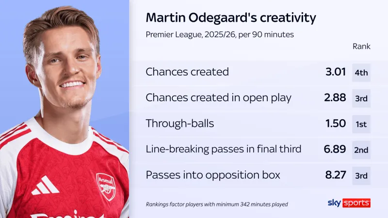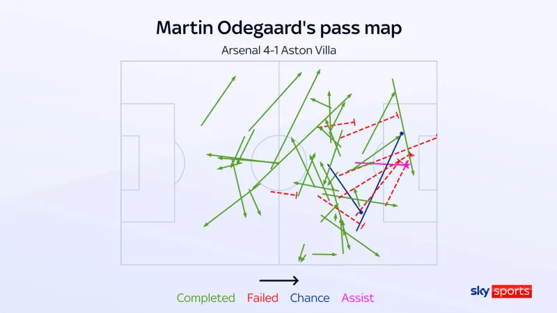 十年后的今天,他對陣阿斯頓維拉的表現(xiàn)正是這些特質(zhì)的集中展現(xiàn)。第二個進球的助攻是突出時刻,但其他方面同樣出色。厄德高在觸球次數(shù)、創(chuàng)造機會數(shù)、射門數(shù)和進攻三區(qū)傳球上均領(lǐng)跑全隊。